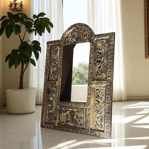Jharokhas often tell a story through their intricate designs. Choose one that resonates with your style or reflects a particular theme, such as nature, spirituality, or tradition. If you choose a Jharoka mirror, it should complement the wall on which it is placed.