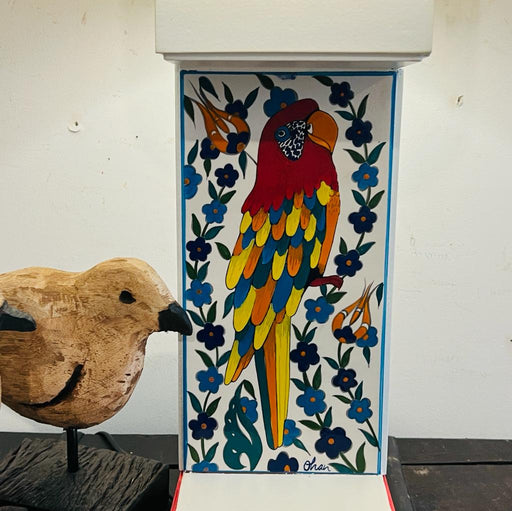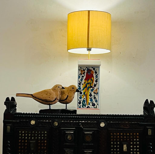 Khoj CraftsThis beautiful Noor 21 tile lamp is the perfect addition to upscale interiors. Hand-painted with an elegant Cockatoo and delicate floral images...
