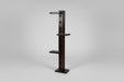 A charming three-level pedestal designed for vertical display, featuring an antique teak wood panel that adds warmth, character, and heritage appeal. Its compact size makes it ideal for smaller spaces while still offering strong visual presence.